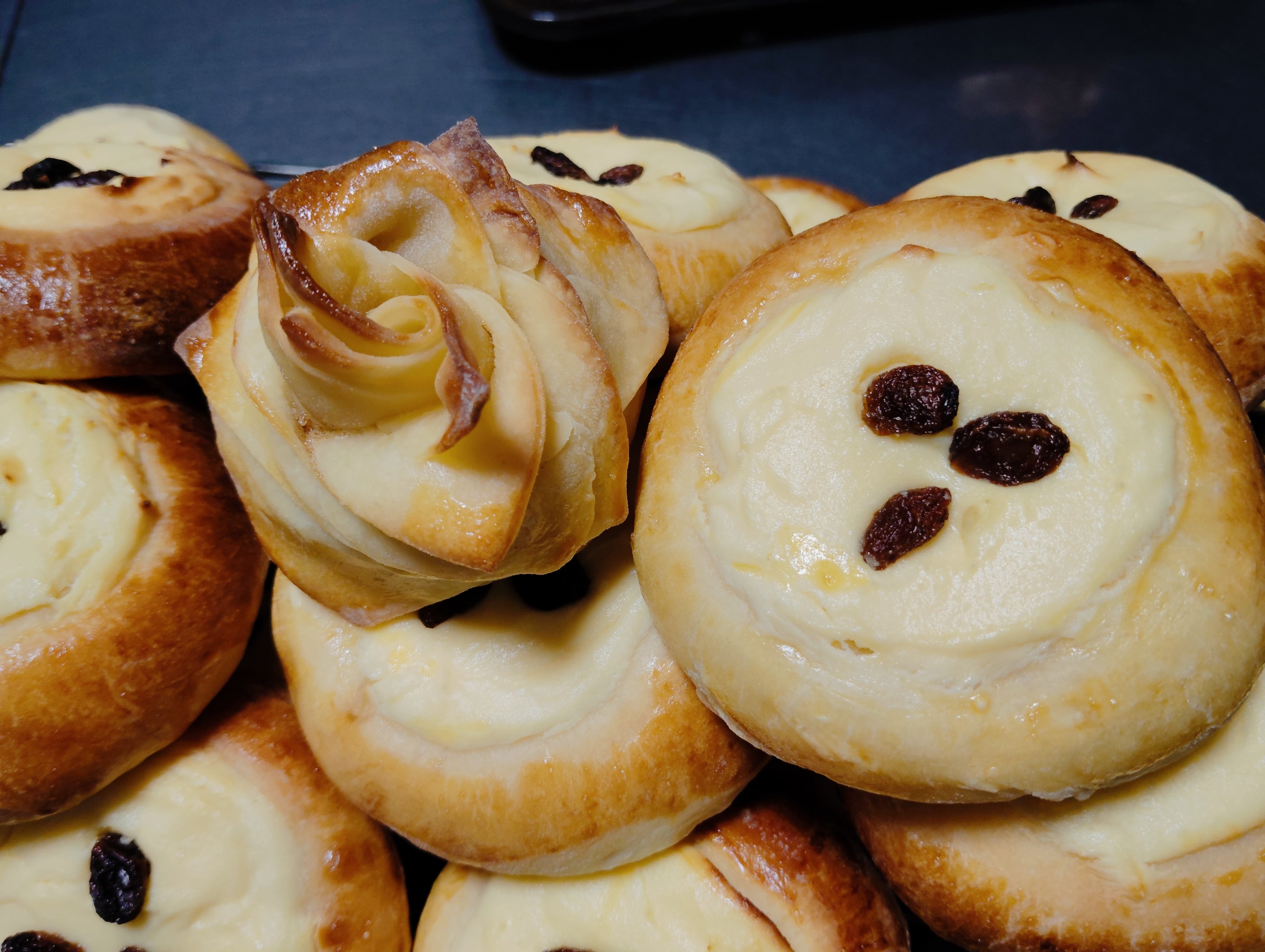 香り高いジャムを入れ、バラの形に巻いたロールパンです。