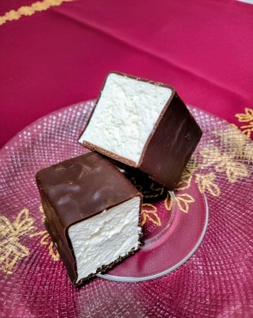 シロックは、低たんぱく質であるカッテージチーズを使用したフィリングにチョコレートをかけたお菓子です。